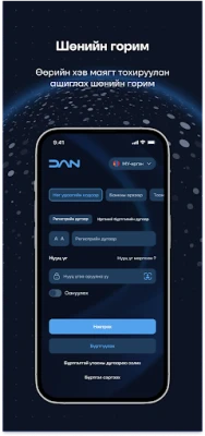 Dan a megbízható digitális hitelesítési alkalmazás, amely nemzeti szinten biztosítja a biztonságos online hozzáférést. Különféle bejelentkezési módokat kínál, mint az egyszeri kód, internetbank vagy Google/Microsoft Authenticator, egyszerűsítve az ügyintézést. Időt takarít meg, lehetővé teszi a digitális szerződéskötést, és erős, kétfaktoros védelemmel őrzi adataidat. Elérhető minden mongol állampolgár számára.