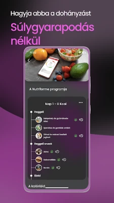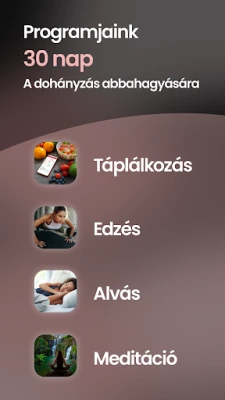 A Cig'Arrête egyedülálló, holisztikus programokat kínál, melyek az Ön igényeire szabottak. Fedezze fel 30 napos meditációs útitervünket, amely segíti a nyugodt leszokást, vagy válassza táplálkozási és sportprogramjainkat, hogy a súlygyarapodás ne okozzon gondot. Alvásfigyelő modulunkkal biztos lehet abban, hogy pihenése is zavartalan marad a leszokás során. Emellett számos hasznos tanáccsal, inspiráló idézettel és egy motiváló cigaretta/megtakarítás számlálóval is támogatjuk céljai elérésében.