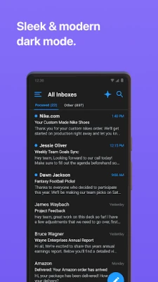 Akár egy, akár húsz e-mail fiókot kezel, az Edison Mail egységesített beérkező levelek nézete páratlan áttekintést nyújt. Felejtse el az alkalmazások közötti ugrálást; az Outlook, Yahoo, Hotmail, iCloud, Office/Outlook 365, Exchange, AOL, Gmail és IMAP* fiókok mind egy helyen, zökkenőmentesen kezelhetők Android eszközén. Az Edison Mail nem csak egyesíti, de fel is gyorsítja a munkafolyamatokat. Az alkalmazás villámgyorsan beolvassa a leveleket, jelentősen csökkentve az inbox ellenőrzésére fordított napi perceket. Ráadásul intelligens keresőfunkciójával pillanatok alatt megtalálja az előfizetéseket, utazási terveket, számlákat és csomagkövetéseket, így a rendetlen beérkező levelek ideje a múlté.